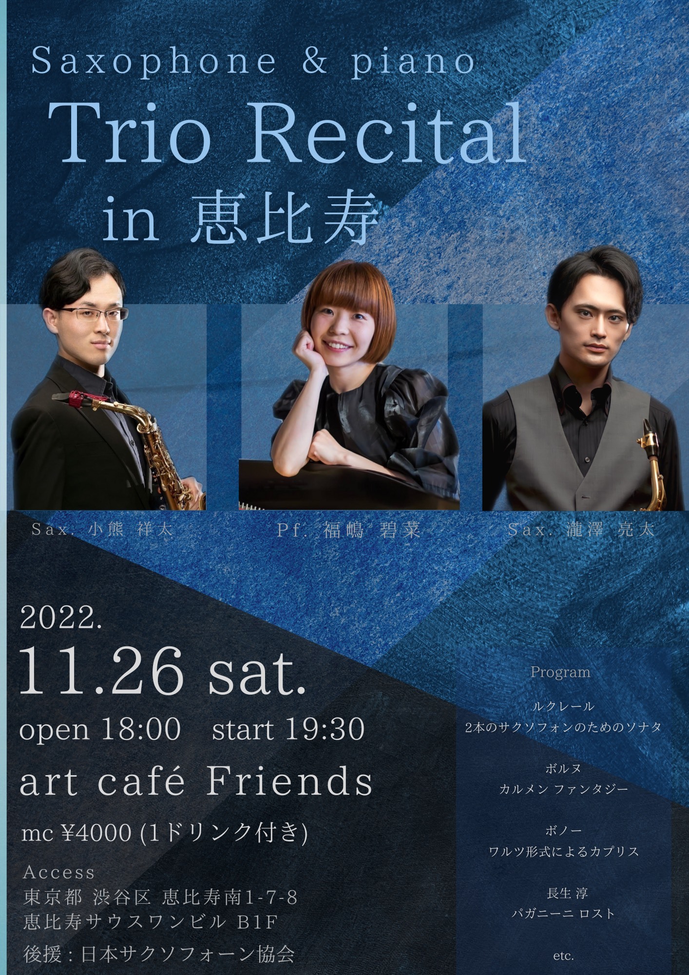 ミュージックチャージ:¥4,500-(+1stドリンク:\500)
